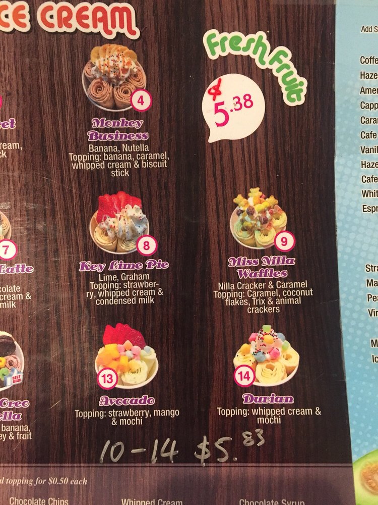 Ice Moon is a Thai rolled ice cream and bubble tea spot located in Philadelphia. They offer a variety of unique and delicious flavors such as Avocado Strawberry, Brownie Boy, and Cheese Cake Ice Cream Waffle. The menu also includes a selection of refreshing bubble teas like Lavender Milk Bubble Tea and Jasmine Green Tea with Bubble. Customers rave about the fast service, cool ambiance, and creative presentation of the ice cream. The staff at Ice Moon wear masks and gloves, ensuring a safe and clean environment for customers. With a spacious interior and outdoor seating, it's a great place to enjoy a sweet treat with friends or family. Whether you're in the mood for a creamy smoothie or a beautifully rolled ice cream, Ice Moon has something for everyone to enjoy.